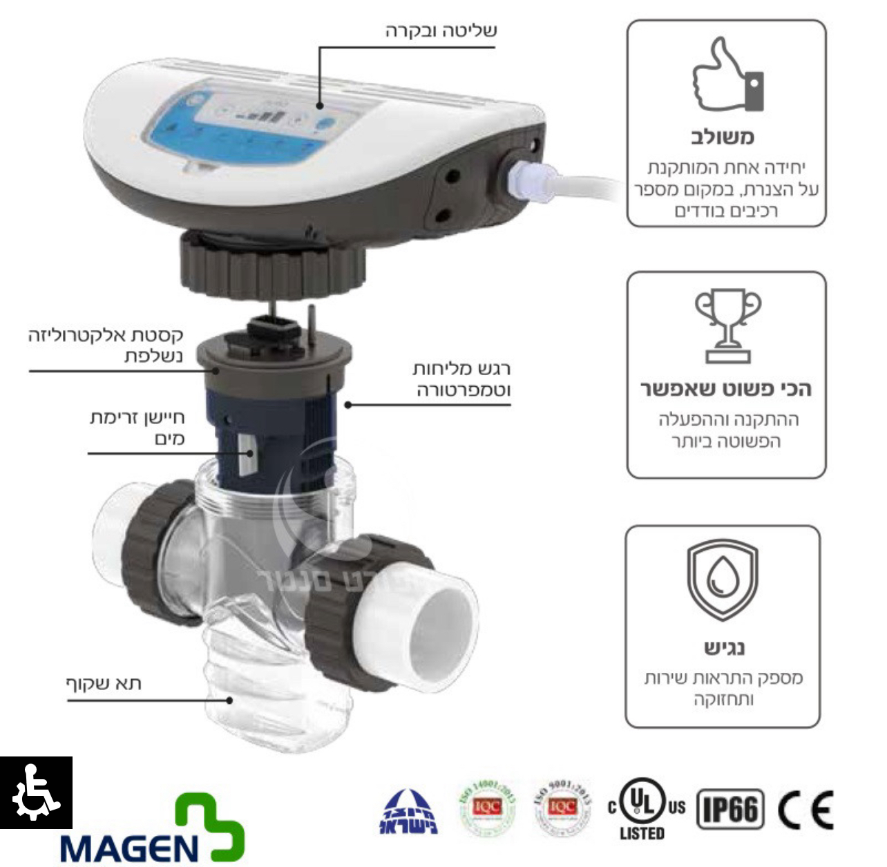 מתאימה לבריכות עד 150 קוב מים, תפוקת כלור 39 גרם לשעה